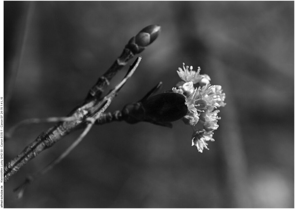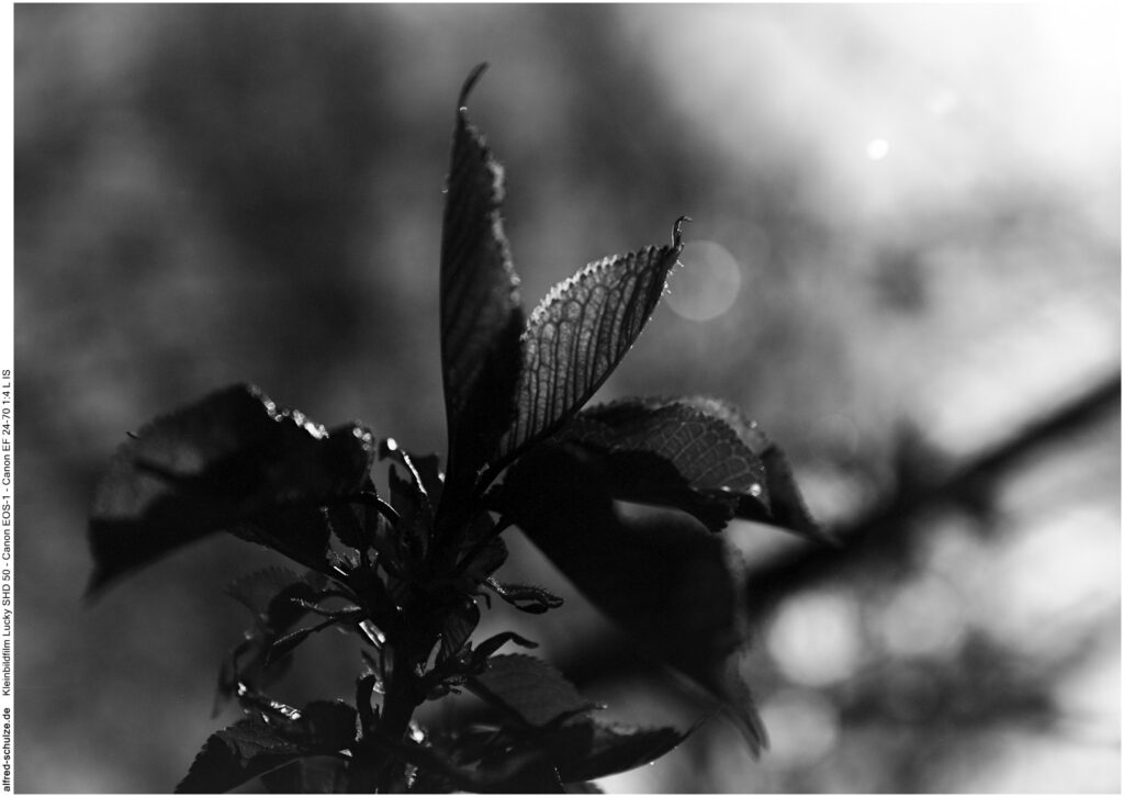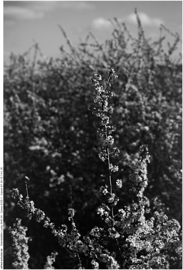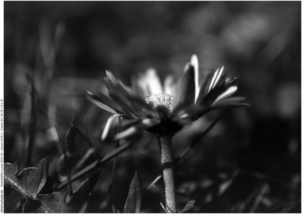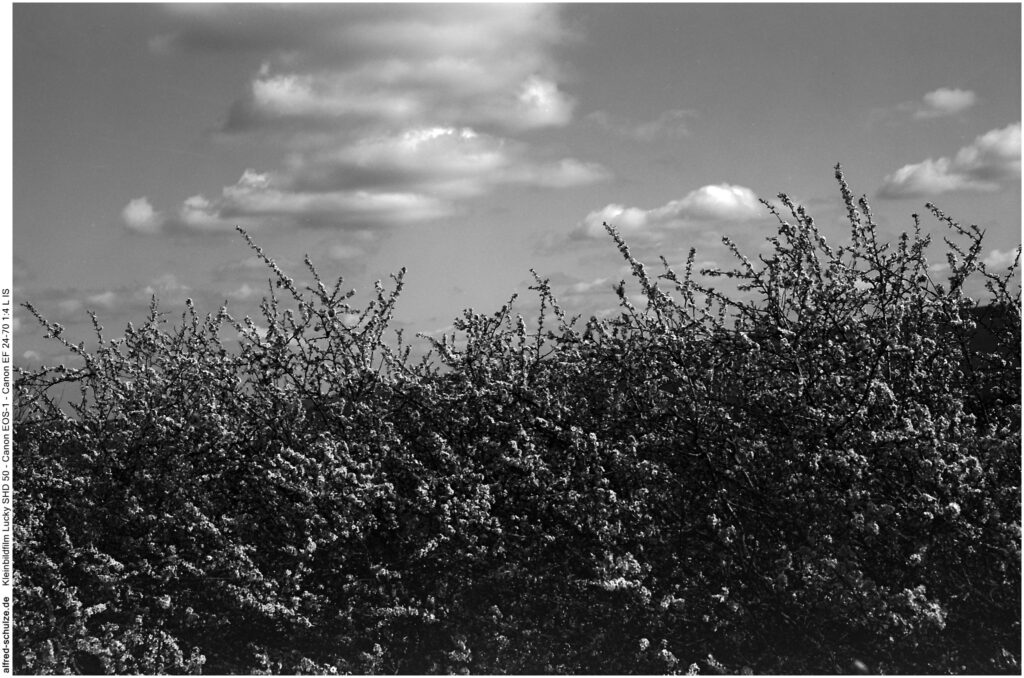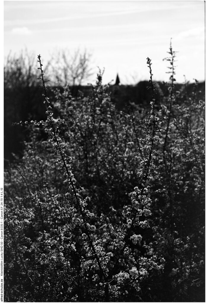 Eine neue Kamera (Canon EOS 1 N) und ein neuer Film (Lucky SDH 50) schrien nach einem Test. Also die gestrigen Wolkenlücken abgepasst und raus, Makros und Landschaftsaufnahmen machen.