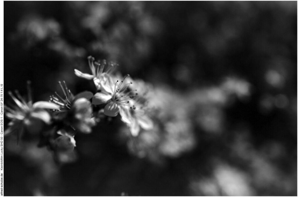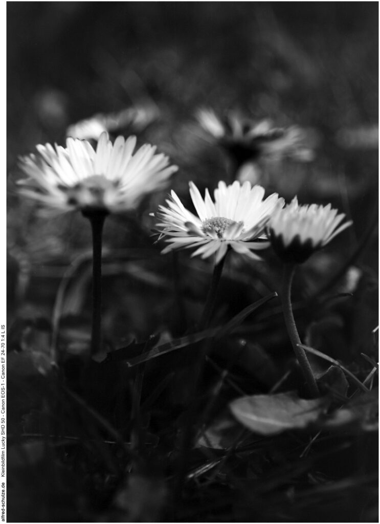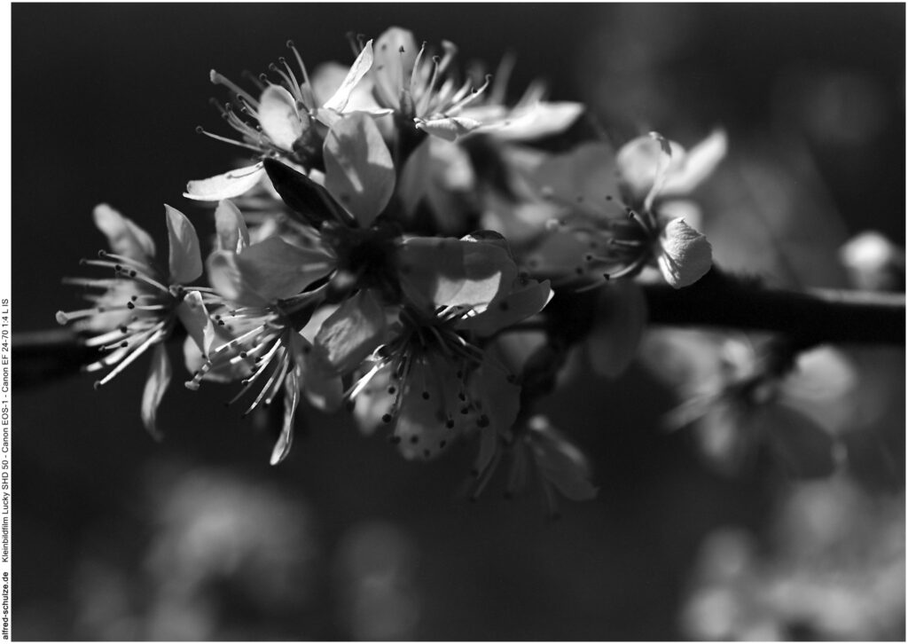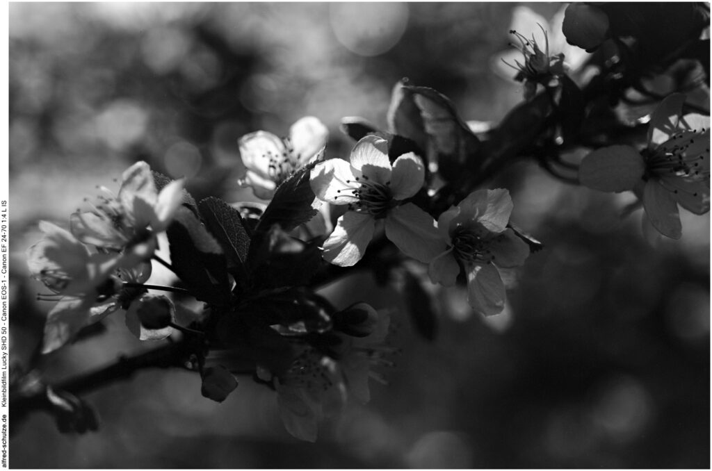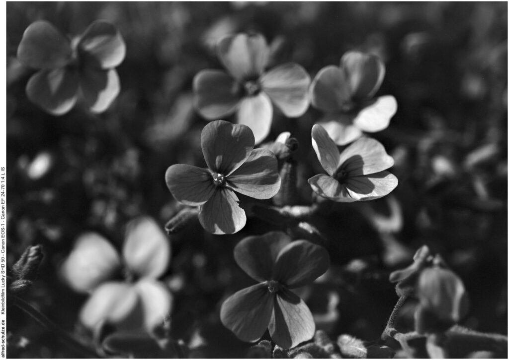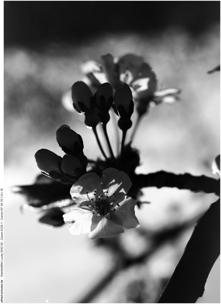 Eine neue Kamera (Canon EOS 1 N) und ein neuer Film (Lucky SDH 50) schrien nach einem Test. Also die gestrigen Wolkenlücken abgepasst und raus, Makros und Landschaftsaufnahmen machen.