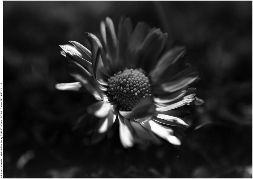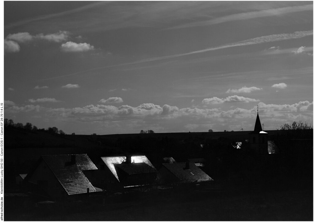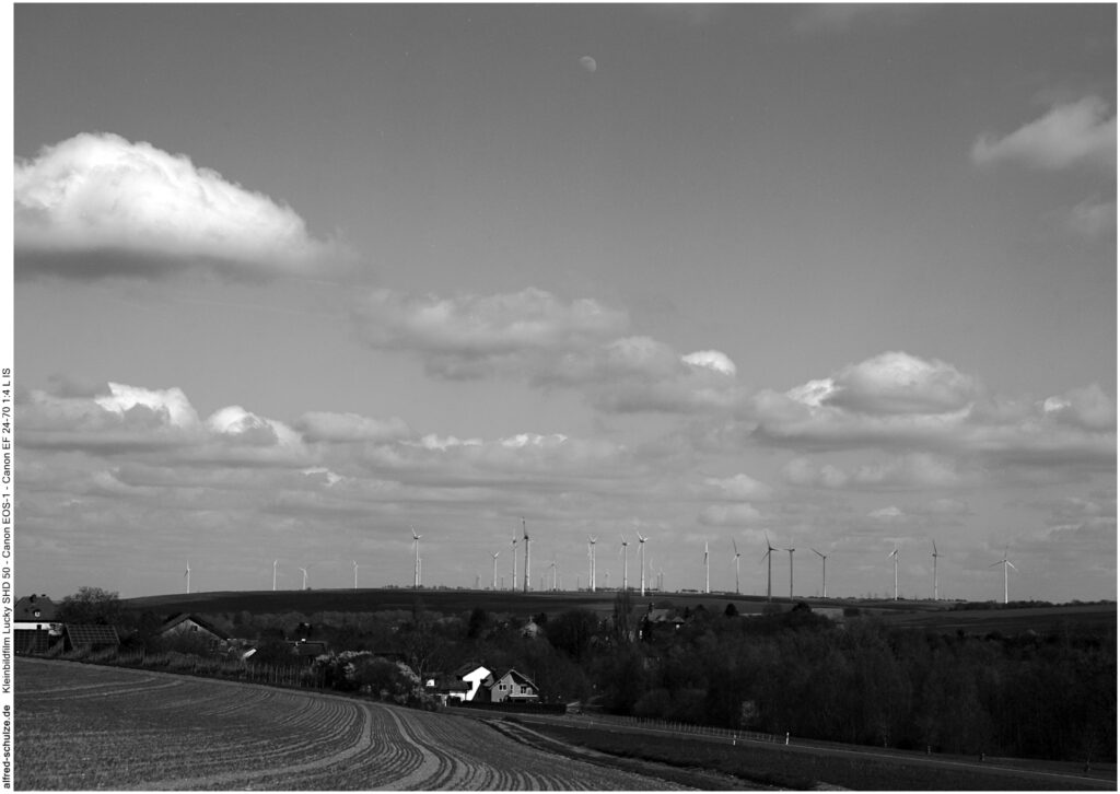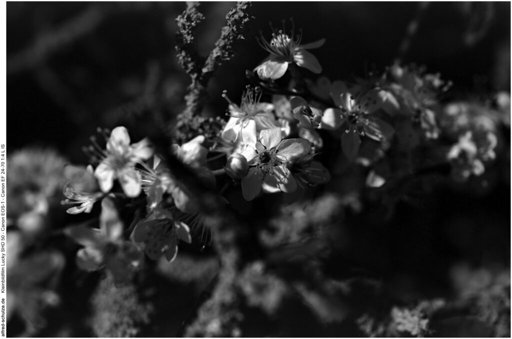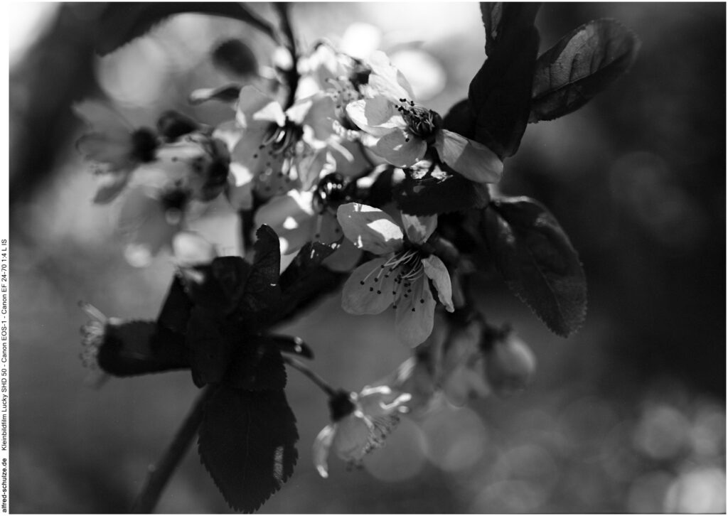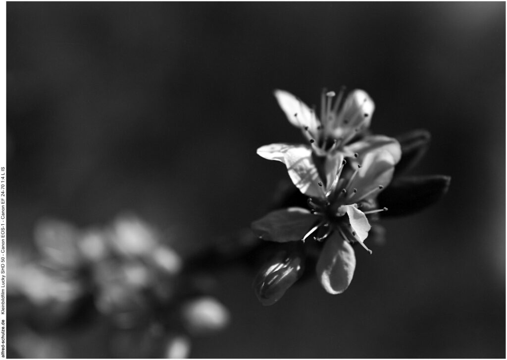 Eine neue Kamera (Canon EOS 1 N) und ein neuer Film (Lucky SDH 50) schrien nach einem Test. Also die gestrigen Wolkenlücken abgepasst und raus, Makros und Landschaftsaufnahmen machen.