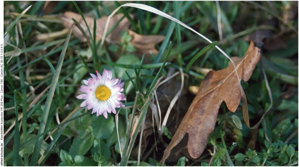 Endlich einmal wieder etwas Sonnenschein. Und die ersten Blüten und Knospen kommen zum Licht. Also auf, eine neue alte Kamera (Canon T80) zum testen griffen, einen ebenso alten Film eingelegt (Kodacolor VR 200 Plus) eingelegt, den Naila angeleint und auf zur Gassitour.